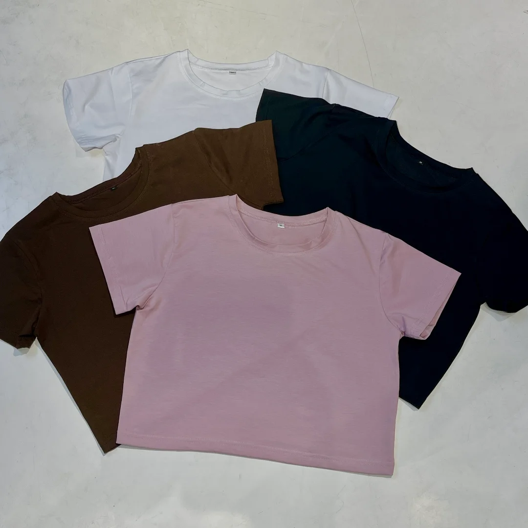 YANGRI Women's Short Sleeves Crop T-Shirt: Peach
